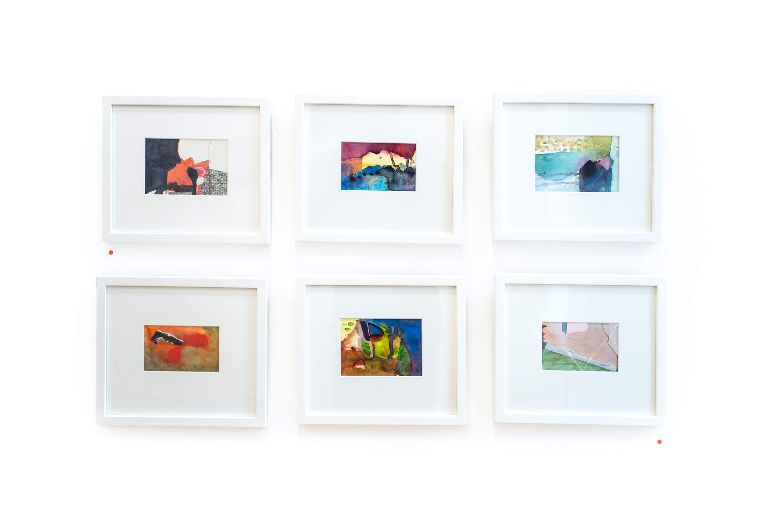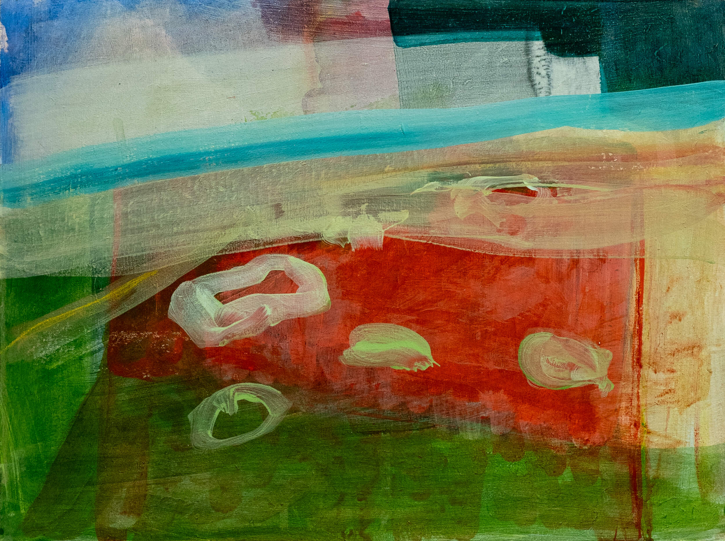 Jewel - acrylic on board 40 x 30cm | Rain Moves In - acrylic on board 40 x 30cm | Garden Party - acrylic and mixed media on board 60c x 60cm